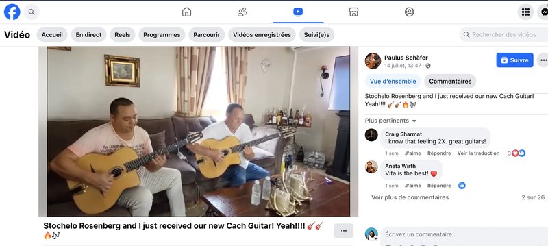 Stochelo Rosenberg et Paulus Schäfer reçoivent deux guitares de Vit Cach, les déballent, les jouent, et... font de la pub pour lui!