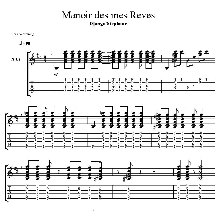 Here's a little snapshot of a tab I created (Manoir des mes Reves -Django/Stephane, Rome). If you'd like the whole tab, subscribe to my site: http://www.darionapoli.com/ (I will be posting new tabs regularly). C'mon, you won't get hurt, it's free and I'll be posting them regularly:)