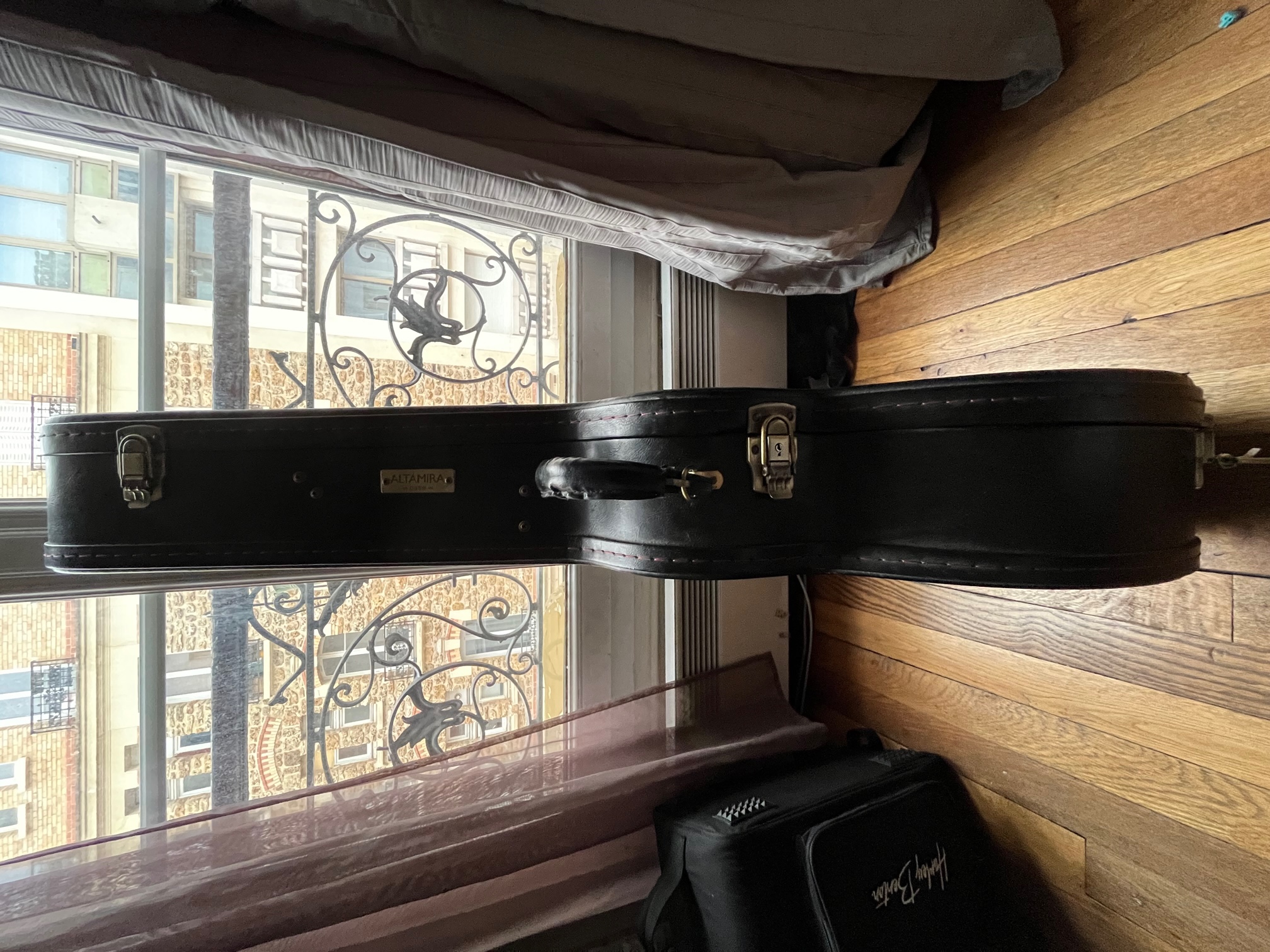 je vends cet étui rigide Altamira imitation cuir, pour guitare jazz manouche